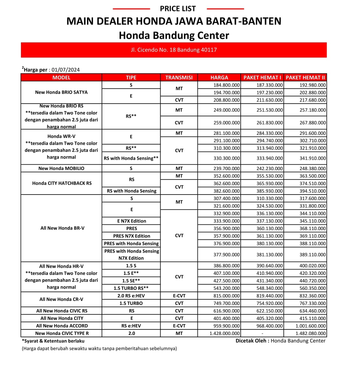 Unduh Pricelist